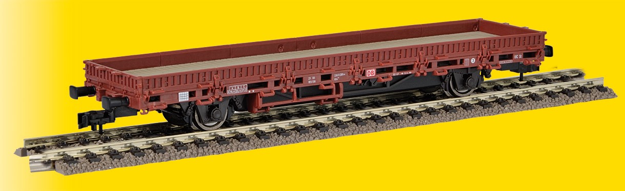 Niederbordwagen mit Antrieb in braun. Funktionsmodell für Dreileitersysteme. Der selbstfahrende Niederbordwagen ist ideal geeignet, um bei Lokomotiven, die keine Motorisierung besitzen, im Verbund den Antrieb zu ersetzen. Die patentierte Antriebseinheit, die der des Robels ähnelt, ist der flachen Bauweise des Niederbordwagens optimal angepasst. Bei Langsamfahrt, im Betrieb mit Sound, digital und analog überzeugt dieses Modell den technikbegeisterten Modellbahner. Mit elektrischem Antrieb und fahrtrichtungsabhängigem und abschaltbarem weißem bzw. rotem Zweilichtsignal am Ende des Wagens. Das integrierte Soundmodul gibt die Pfeife und verschiedene betriebsabhängige Geräusche wieder. RailCom-fähiger Digitaldecoder für DCC / MM und Analogbetrieb (DC/AC) mit integriertem Stromspeicher. Ein typischer Diesel- oder Dampfloksound ist per CV auswählbar. Funktionsumfang im Analogbetrieb: Fahrmodus vorwärts / rückwärts, Sound aktiv (Art und Lautstärke einstellbar über CV), Licht aktiv. Funktionsumfang im Digitalbetrieb: Fahrmodus vorwärts / rückwärts. schaltbare Funktionen: Sound (Art & Lautstärke einstellbar über CV), Pfeife, Licht. Kupplungsschächte nach NEM 362 beidseitig. Maße: LüP 16,8 x 3,5 x H 2,0 cm.