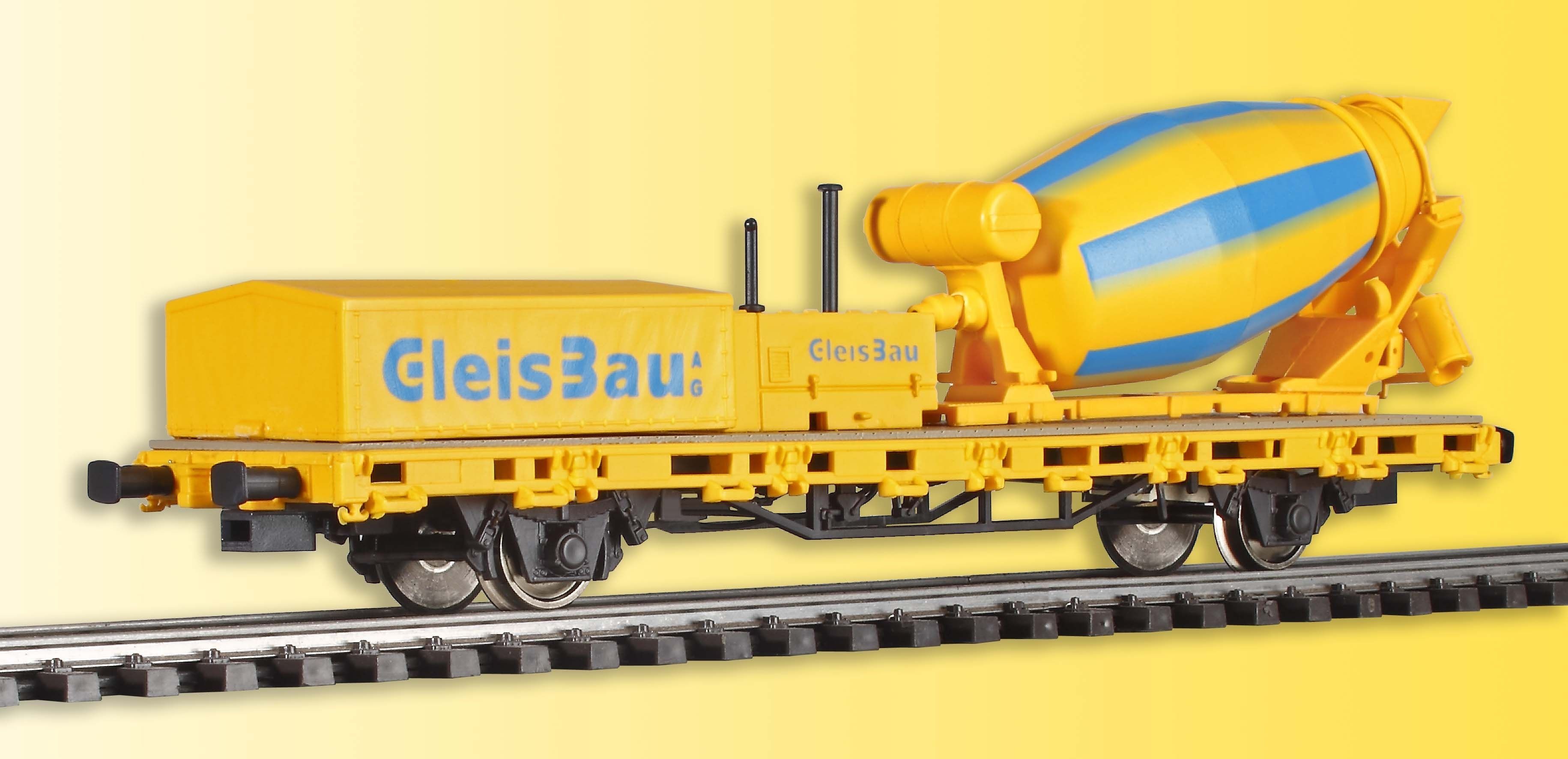 Arbeitsfahrzeug für den Gleisbau, z. B. zum Gießen von Signal- und Oberleitungsfundamenten. Das Modell hat eine rotierende Mischtrommel und einen integrierten Funktionsdecoder für DCC/MM und Analogbetrieb. Die Funktion der Trommel ist im Digitalbetrieb schaltbar, im Analogbetrieb dreht sich die Trommel während der Fahrt in eine Richtung. Mit Normschacht für Kupplungen und montierten Systemkupplungen. Mit patentiertem Unterflurantrieb. Metallräder. Maße: LüP 15,8 x B 3,6 x H 5 cm.