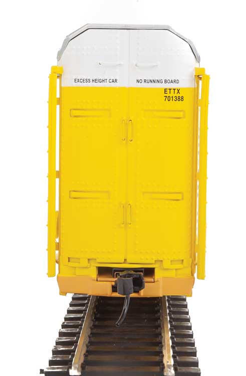 89' Thrall Enclosed Tri-Level Auto Carrier - Ready to Run -- Chicago & North Western(TM) ETTX Flat #701338 (yellow, silver)