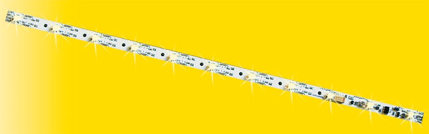 effekte einstellbar, wie Einschaltsimulation von Leuchtstoffröhren oder einzelne flackernde Röhren. Das Modell verfügt über fahrtrichtungsabhängige Schaltausgänge für Stirn- und Schlussbeleuchtung. Ein zusätzlicher Schaltausgang mit bis zu 150 mA Belastbarkeit rundet die Funktionalitäten ab. Die Stromversorgung erfolgt entweder durch am Waggon vorhandene Schleifer/Kontaktsätze oder durch unsere stromführenden Kupplungen Art. 5048/5071. Für Gleich-, Wechsel- und Digitalspannung geeignet. Anschlussmöglichkeit für Zugschlussbeleuchtung, z. B. Art. 5056. Aufgrund des verlustarmen Schaltreglers erwärmt sich die Innenbeleuchtung nur wenig. Stromaufnahme ca. 20 mA. Maße: L 25,4 x B 0,8 cm.