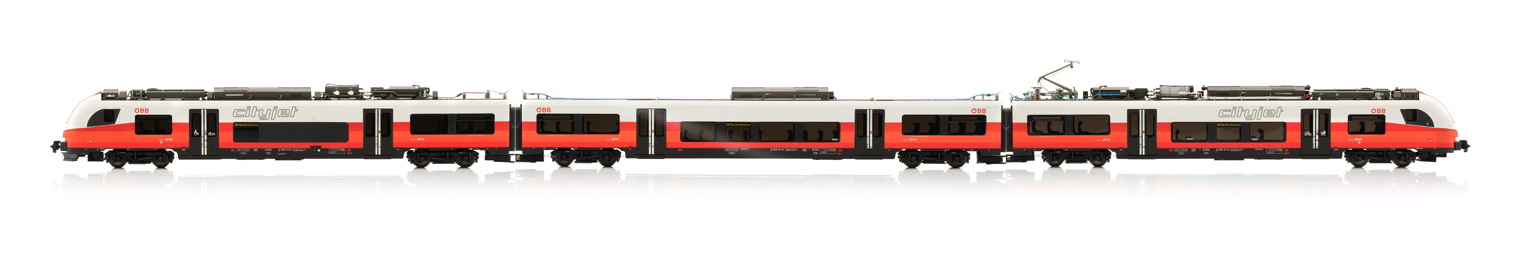 AC Digital. Triebwagen Desiro ML 3-tlg der ÖBB CityJet für die Epoche 6. 3. Betriebsnummer. Produktdetails: - High End Version - stromführende Kupplungen - Innenbeleuchtung - hoch detaillierter Dachaufbau - drei verschieden Betriebsnummern - 12 verschiedene Zuglaufschilder
