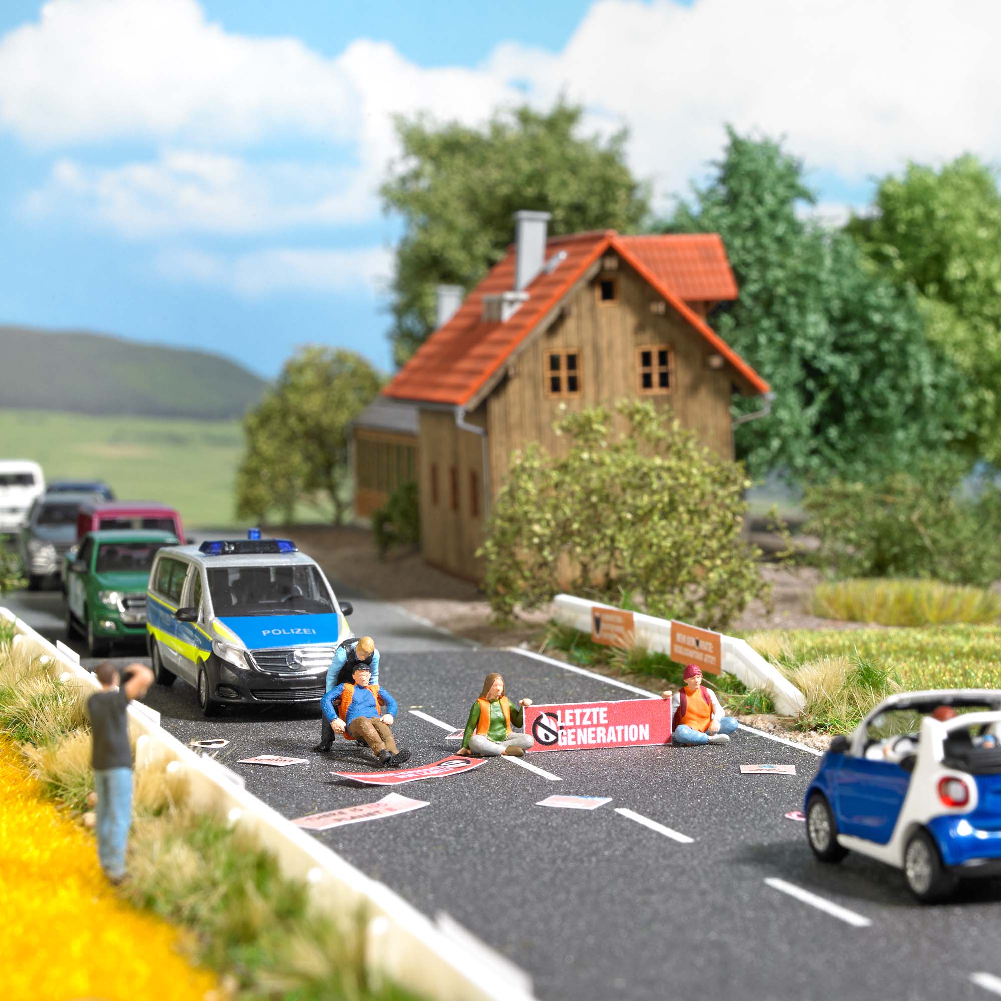 Straße, 4 Figuren + Plakate