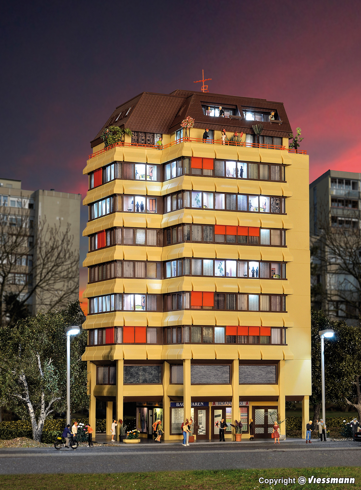 Funktionsbausatz. Dieser Klassiker ist mit dem Viessmann-Startset Art. 6045 ausgestattet. Das sorgt für eine vorbildgerechte Etagenbeleuchtung. Auch Eckfenster können damit realistisch beleuchtet werden. Mit einem 2. Bausatz ist das Gebäude in der Höhe flexibel erweiterbar. Maße: L 20 x B 18 x H 34 cm. Schwierigkeitsgrad: 2 (Fortgeschrittene).