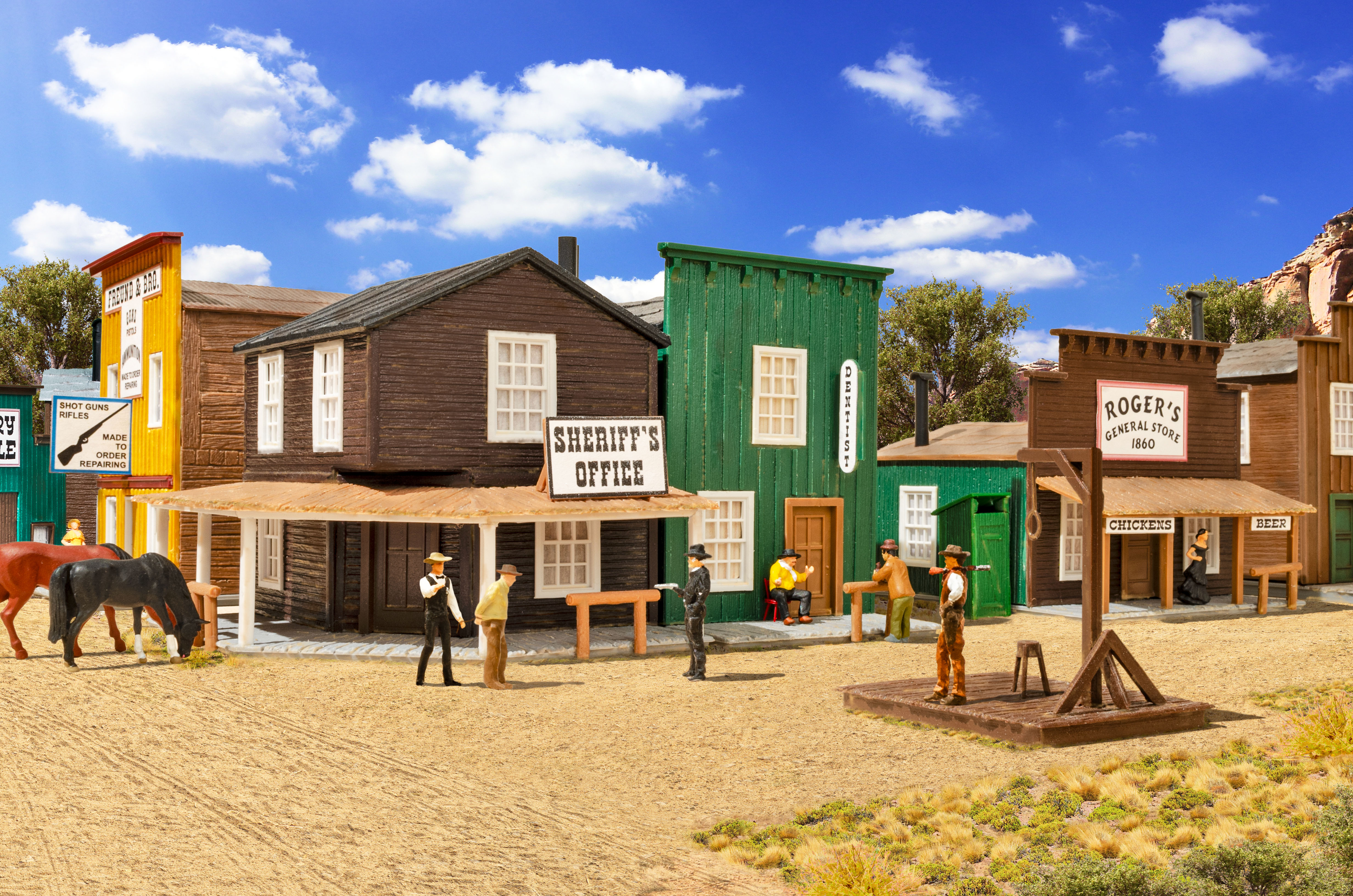 Bausatz. Mit den Westernhäusern Art. 38501, 38502, 38504, 38506 und 38508 holen Sie sich den Wilden Westen auf Ihre Modellanlage. Jedes Set besteht aus 3 Gebäuden. Maße: L 6 x B 9,5 x H 8,7 cm, L 8,4 x B 9,5 x H 7 cm, L 10,5 x B 8,3 x H 8 cm. Schwierigkeitsgrad: 2 (Fortgeschrittene).