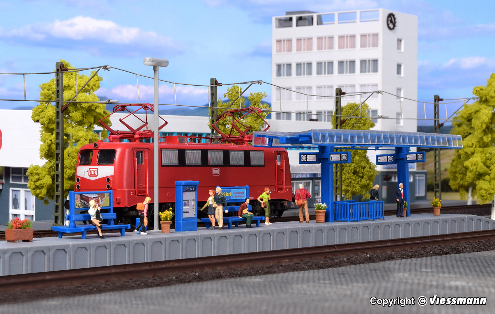 Funktionsbausatz. Bausatz mit vormontierter Beleuchtung zum einfachen Aufbau. Das Modell überzeugt durch realitätsnahe, weiße LED-Beleuchtung unter dem Dach. Enthalten ist zusätzlich eine moderne Viessmann Bahnsteigleuchte mit LED weiß. Bahnsteighöhe: 1 cm. Maße: L 56,5 x B 3,8 x H 9 cm. Schwierigkeitsgrad: 2 (Fortgeschrittene).