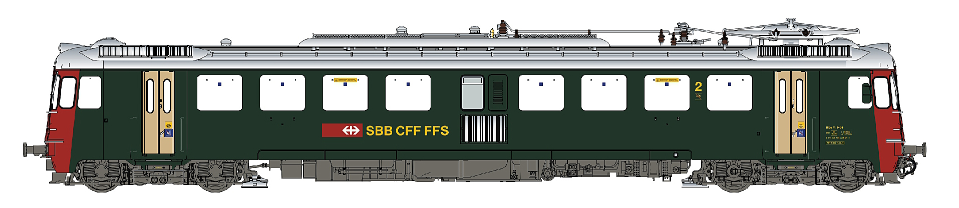 AC Sound Triebwagen RBe 4/4 1404 der SBB, grün, goldfarbene Türen, rote Fronten, neues Logo, für die Epoche 4/5.