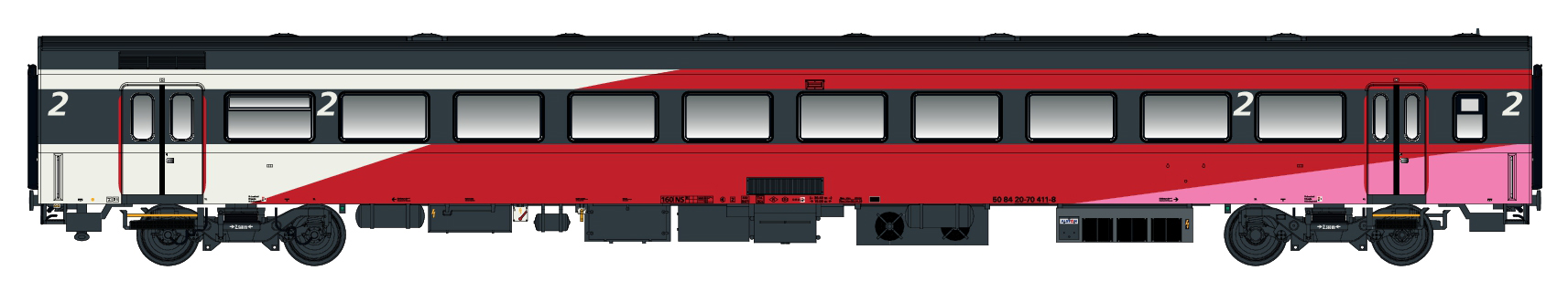 Reisezugwagen ICRm B 2. Klasse mit Klimaanlage, der NS Fyra, Wagen 21/ Endwagen, Farbgebung weiß/rot/mittelrosa, für die Epoche 6.