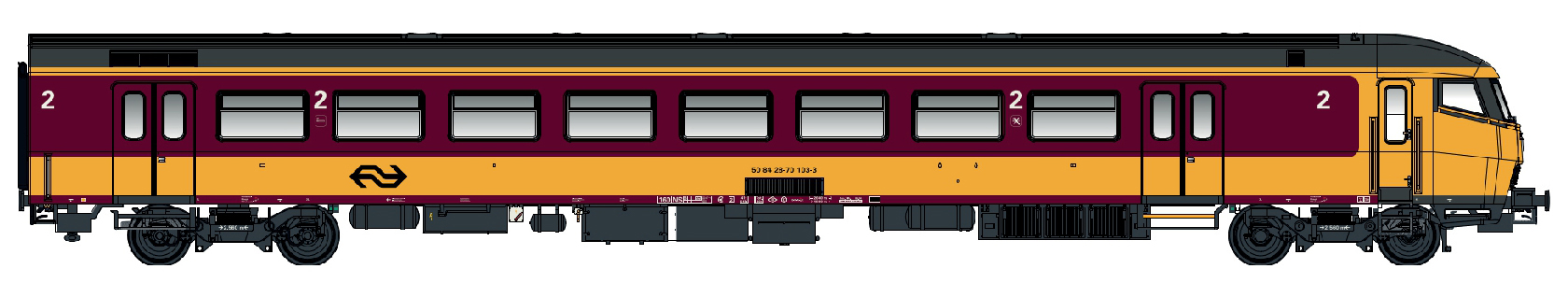 Steuerwagen ICR Bs 2. Klasse ohne Klimaanlage, der NS für den Benelux Verkehr, Farbgebung bordeauxrot/gelb, für die Epoche 4/5. -