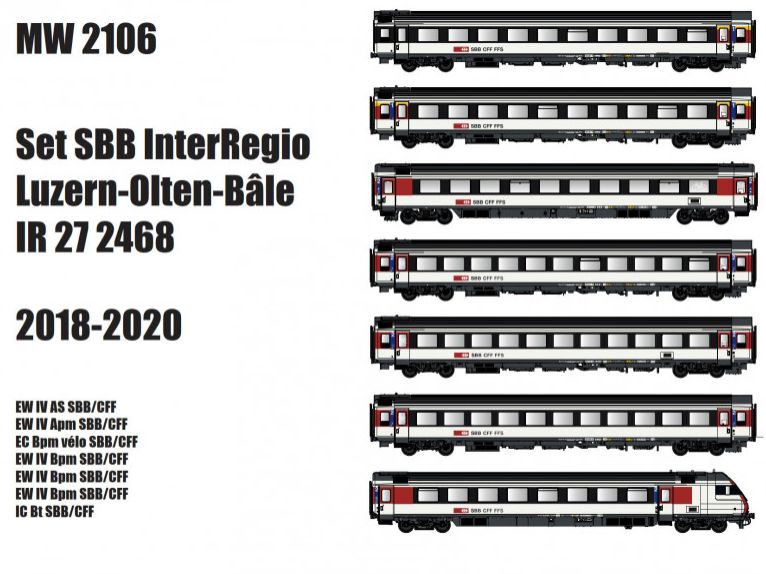 Reisezugwagen-Set 7-teilig der SBB IR 27 2468 Luzern-Olten-Basel, für die Epoche 6 (2018-2020)