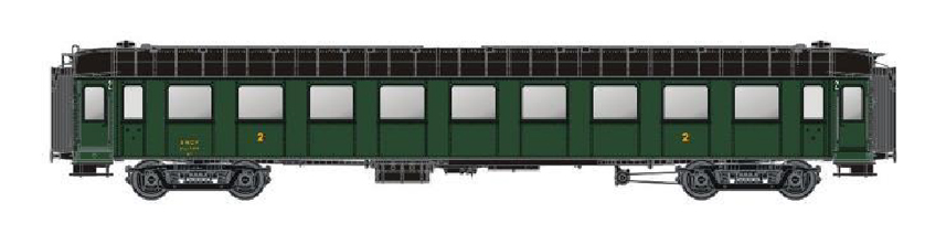 Reisezugwagen 2. Klasse OCEM B9myfi, grün, schwarzes Dach, der SNCF Region Südost, Betriebsnummer 5 5595, Epoche 3(1938).