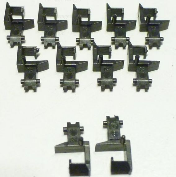 10x verkürzte Normkupplung. Mit dieser Kupplung ist ein kuppeln Puffer an Puffer bei Wagen mit Kurzkupplung-Kinematik möglich. Diese Kupplung wird einfach in den Normschacht eingesteckt.