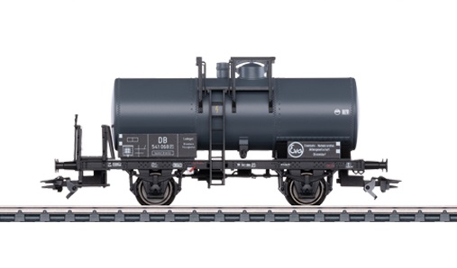 Kesselwagen ohne Bremserhaus, EVA, Betr.-Nr. 541 068 - Vorbild: 2-achsiger Kesselwagen mit einem genieteten Kessel mit 19,2 m3 Fassungsvermögen, ohne Bremserhaus. Betriebszustand 1950 bis 1959.Modell: Kesselwagen mit zwei Radsätzen in detaillierter Ausführung mit Handbremse und Bremserbühne ohne Bremserhaus. Detailliertes Fahrgestell mit durchbrochenem Rahmen. Detailliert nachgebildete und separat angesetzte Handbremskurbel, Bremsanlage und Entleerungsrohre. Angesetzte Arbeitsbühne mit Aufstieg. Angesetzte Bremserbühne. Mit kulissengeführten Kurz-Kupplungen. Dieser Wagen ist einzeln verpackt im Display 00719 enthalten. Länge über Puffer ca. 10,1 cm. Gleichstromradsatz E700580 separat erhältlich.Ergänzende Wagen finden Sie im Trix H0-Sortiment unter der Artikelnummer 24170.