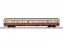 Schnellzugwagen Apümh 121 Vorbild: 1. Klasse Schnellzug-Großraumwagen Bauart Apümh 121 der Deutschen Bundesbahn (DB). Purpurrot/Beige Grundfarbgebung. Betriebszustand um 1975. Modell: Mit Digital-Decoder mfx. Mit beweglicher, digital schaltbarer Schaffnerfigur im Mittelgang. Serienmäßig eingebaute LED-Innenbeleuchtung, trennbare stromführende Kupplungen und Zugschlussbeleuchtung am Wagenende 1 und 2 jeweils separat digital schaltbar. Beleuchtung mit wartungsfreien Leuchtdioden (LED). Mit Pufferspeicher. Schleifer ist montiert. Typspezifisch gestalteter Unterboden und Schürze. Mit Drehgestellen nach Bauart Minden-Deutz schwer, vorbildentsprechend mit Scheibenbremsen, Magnetschienenbremse und angesetzten Generatoren. Inneneinrichtung mit Figuren. Gesamtlänge über Puffer 28,2 cm.