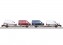 Flachwagen-Paar Laads 800B - Vorbild: Flachwagen-Paar Bauart Laads 800B der Transwaggon GmbH, Hamburg. Rotbraune Grundfarbgebung. Betriebszustand ab 2005.Modell: Beide Flachwagenhälften aus Metall. Viele separat angesetzte Details wie Bremsleitungen, Luftbehälter, Überfahrbleche, Tritte und Bremsgestänge. Mit Handrad für Feststellbremse. Pufferhöhe nach NEM. Kinematikgeführte, starre Schraubenkupplung zwischen den Wagenhälften. Haltekeile für die Wagenoberseite, Haltekeile für den Wagenboden und Bremsschläuche liegen als separat ansteckbare Teile bei. Beladen mit vier VW Crafter von der Firma Schuco. Länge über Puffer 32,4 cm. Gleichstromradsatz E414237.Ein weiteres Flachwagen-Paar mit anderer Betriebsnummer und Beladung finden Sie im Trix H0-Sortiment unter der Artikelnummer 24428 mit dem Hinweis auf die benötigten Tauschradsätze.