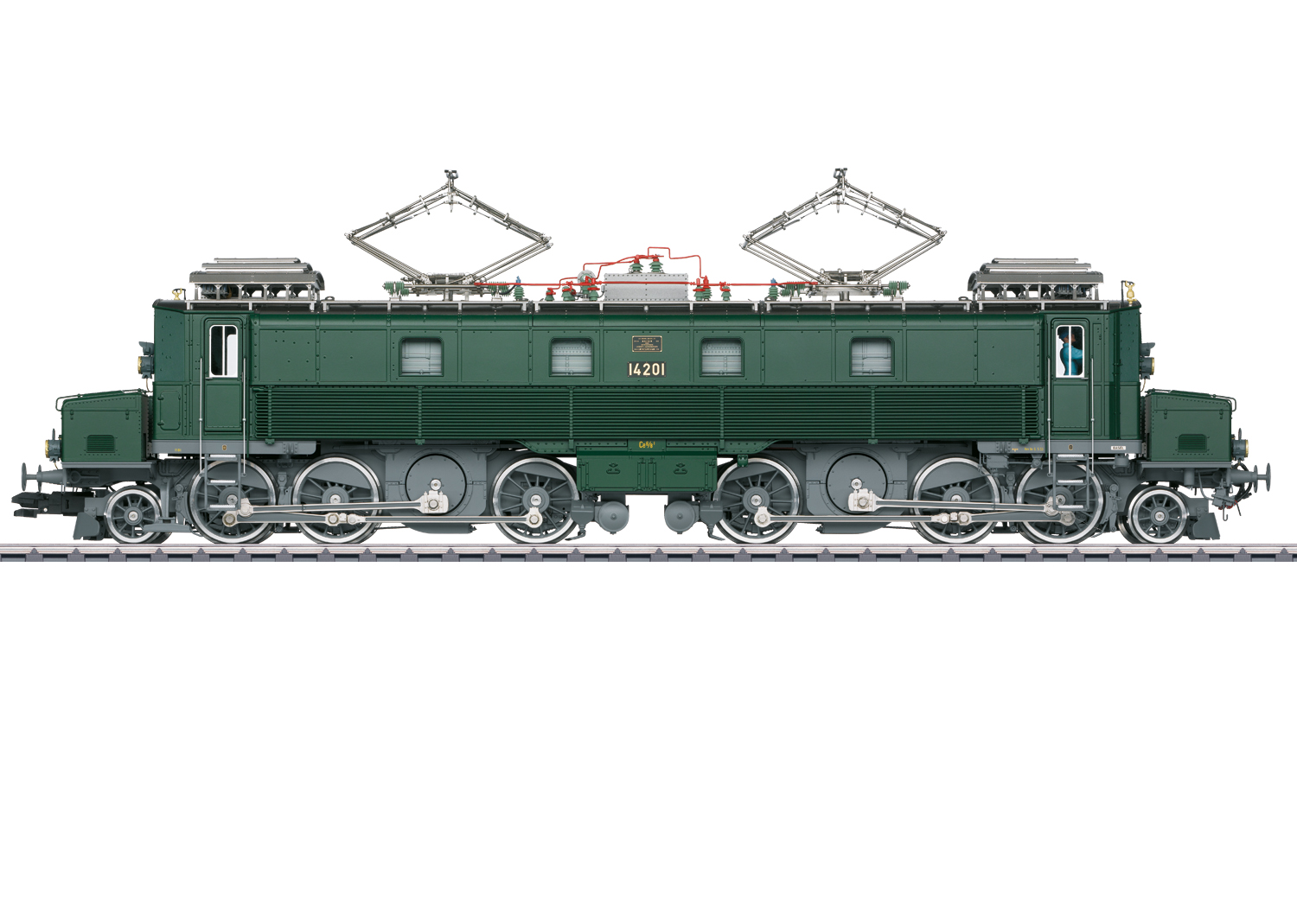 Vorbild: Elektrlokomotive Ce 6/8 I "Köfferli" in tannengrüner Farbgebung im Betriebzustand der Epoche III, Anfang der 1950er Jahre. Betriebsnummer 14201.