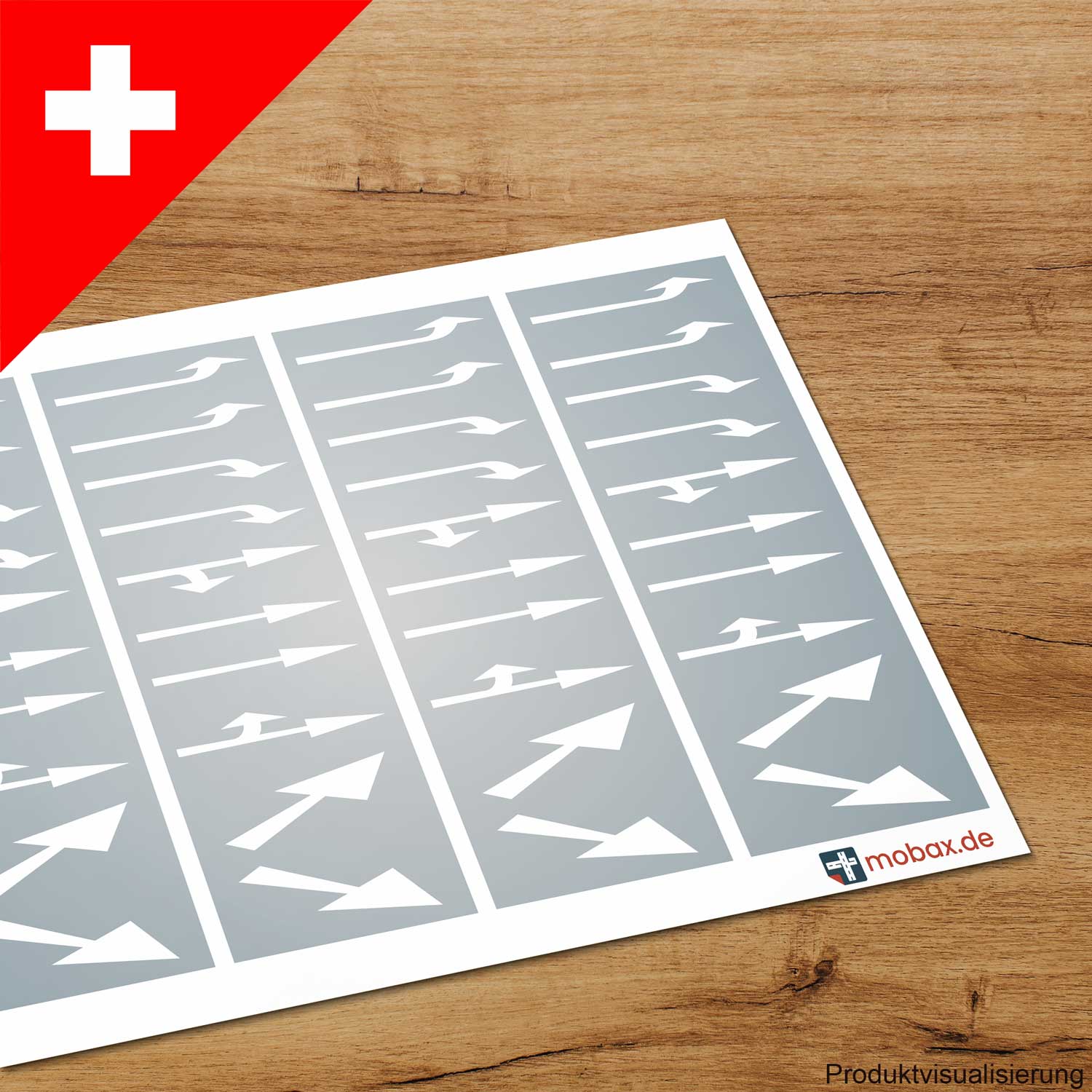 Spur N - 1:160 : Schweiz - Weiß, Stadt, Landstraße - Pfeile-Set für den Kanton Basel in der Schweiz.Die Pfeile entsprechen der genormten Größe. Das Set beinhaltet eine große Auswahl der gängigen Pfeilsymbole:links ab - 8rechts ab - 8geradeaus und rechts ab - 4geradeaus - 8geradeaus und links ab - 4nach links wechseln - 4nach rechts wechseln - 4Anwendung:Die Pfeile lassen sich auf die individuellen Bedürfnisse anpassen und anordnen. Lassen Sie Ihrer Kreativität freien Lauf und erschaffen Sie absolut realistätsnahe Modelle.Es handelt sich um hochwertige, selbstklebende Markierungsfolie mit sehr starker Haftung. Die flexiblen Markierungen passen sich perfekt dem Untergrund an und lassen sich in nahezu jedem Kurvenradius legen. Gestochene Randschärfe der einzelnen Elemente.