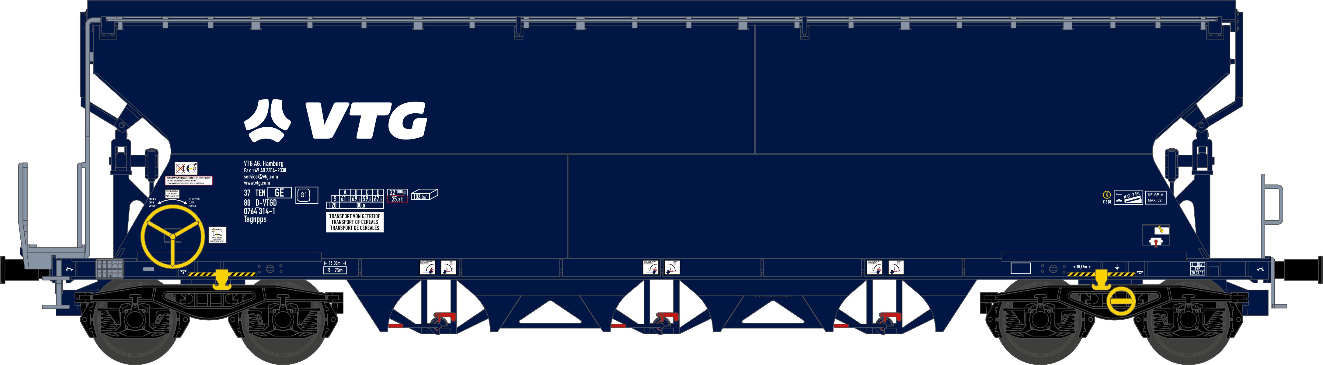 Silowagen für Getreidetransport Tagnpps 102m³ VTG, blau, für die Epoche 6, AC Version, mit Zugsschlussbeleuchtung CH, AC.