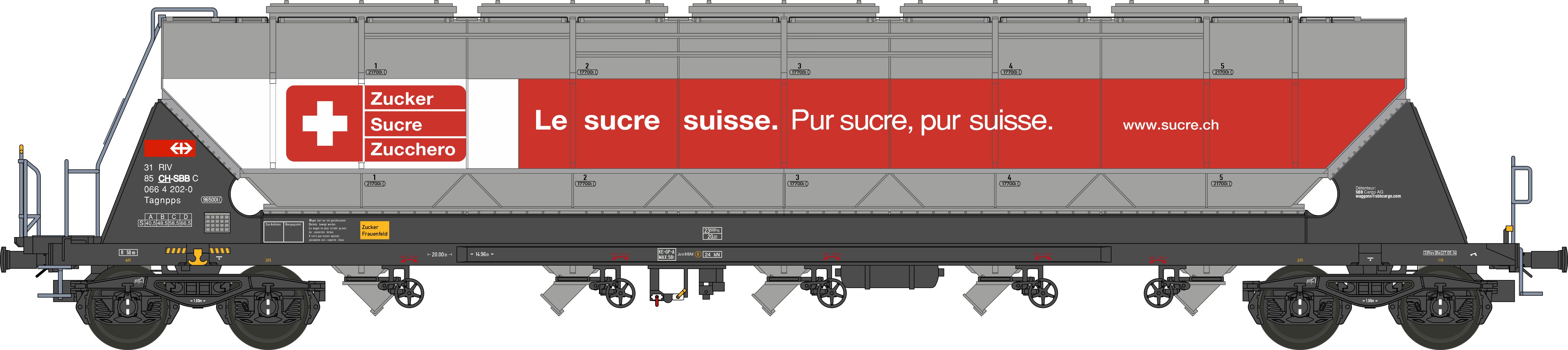 Silowagen für Getreidetransport Tagnpps 96,5m³ SBB Cargo, weiß/rot, für die Epoche 6. AC Version, mit Zugschlussbeleuchtung CH, AC.