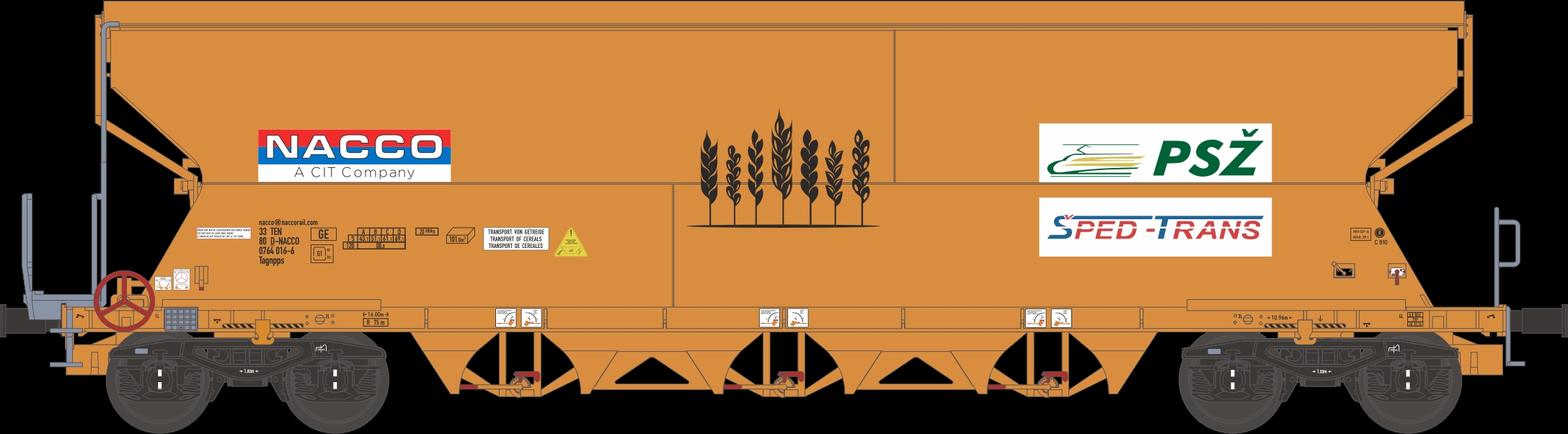 Getreidewagen Tagnpps 101m³ 'PSZ', orange, NACCO, 3. Betr.nr. ,geänderte Wagennr., Betriebsnummer: 0764 002-6