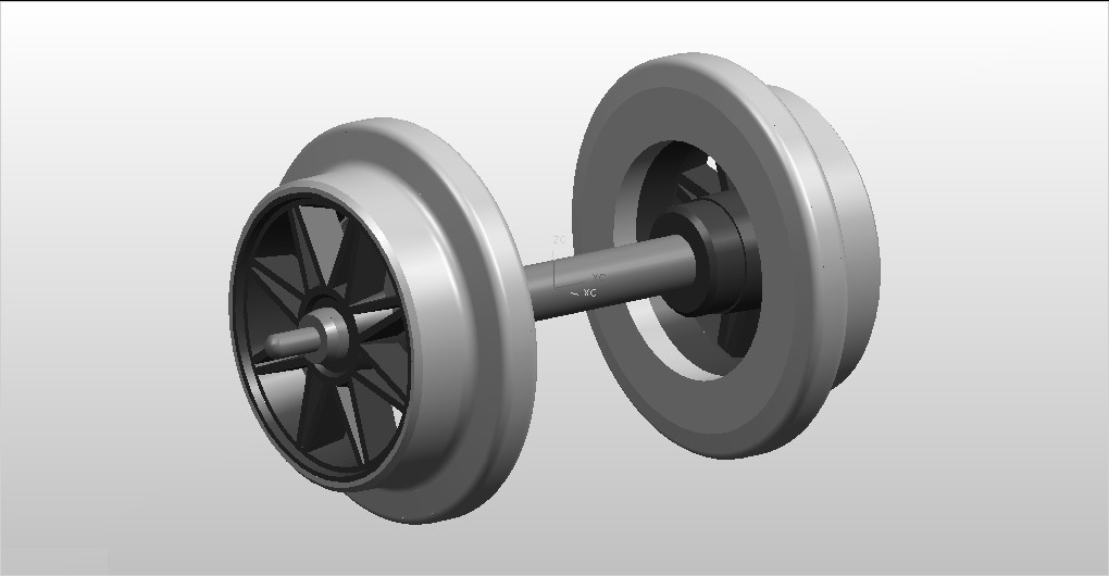 Radsatz mit schwarzen Doppelspeichen 11 mm, zapfengelagert, beidseitig isoliert.