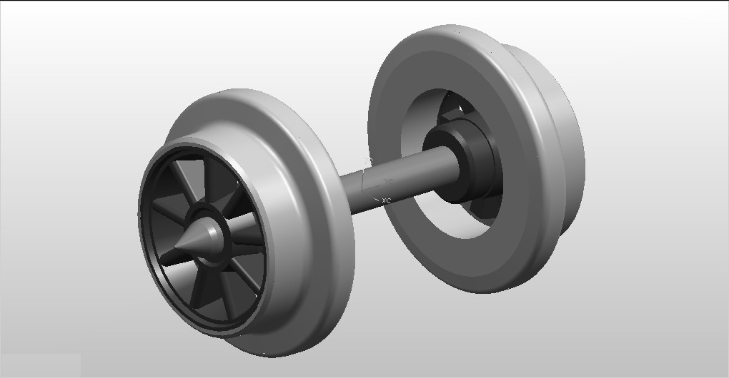 Radsatz mit schwarzen Einfachspeichen 10 mm, spitzengelagert, beidseitig isoliert.