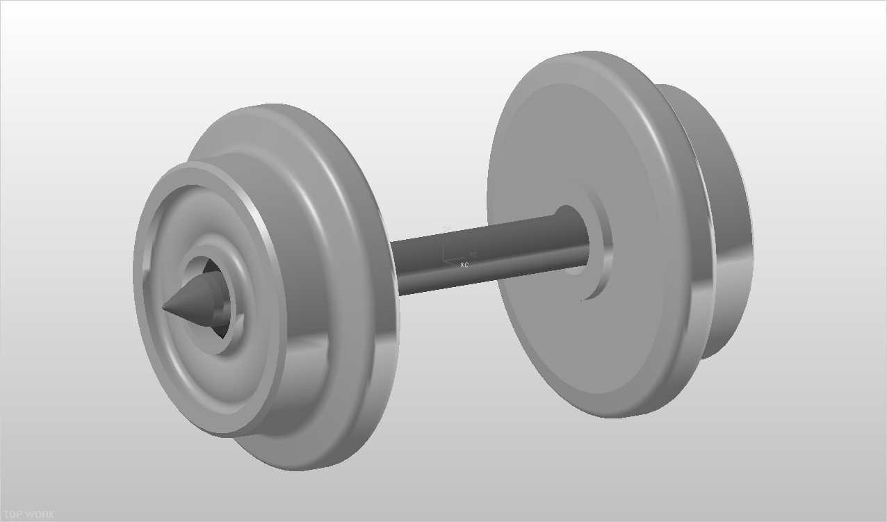 Scheibenradsatz 10 mm, Niederquerschnitt, spitzengelagert, einseitig isoliert.