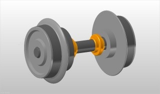 Antriebsradsatz V 45 mit Haftreifen und Lagerschalen für AC Digital.