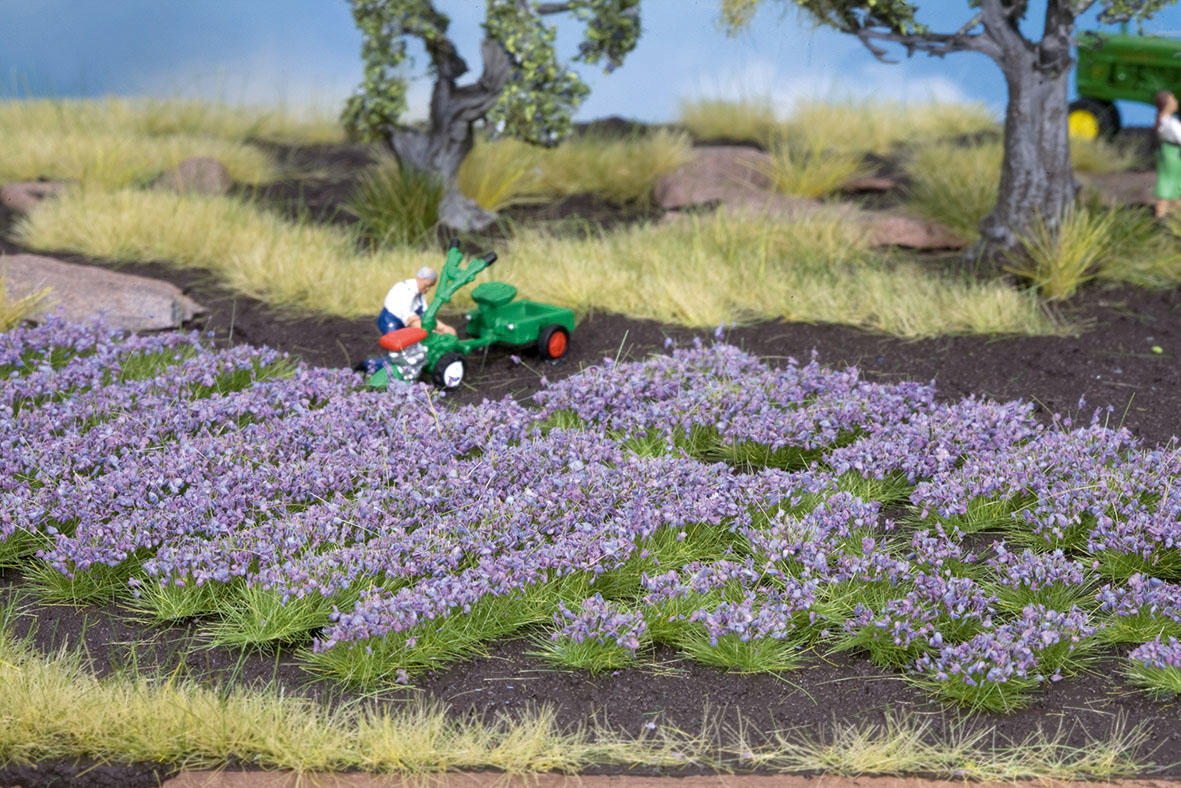 h0/TT. Inhalt: 18 Streifen, 18 Büschel, Spitzen mit feinem lilafarbenem Flock veredelt.