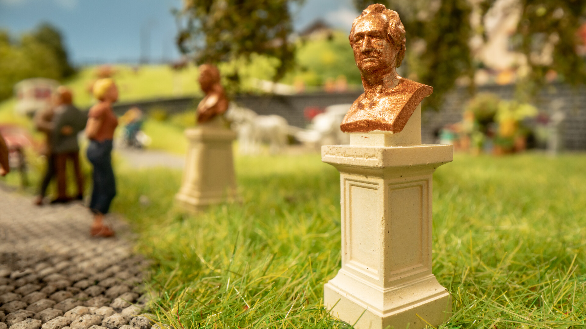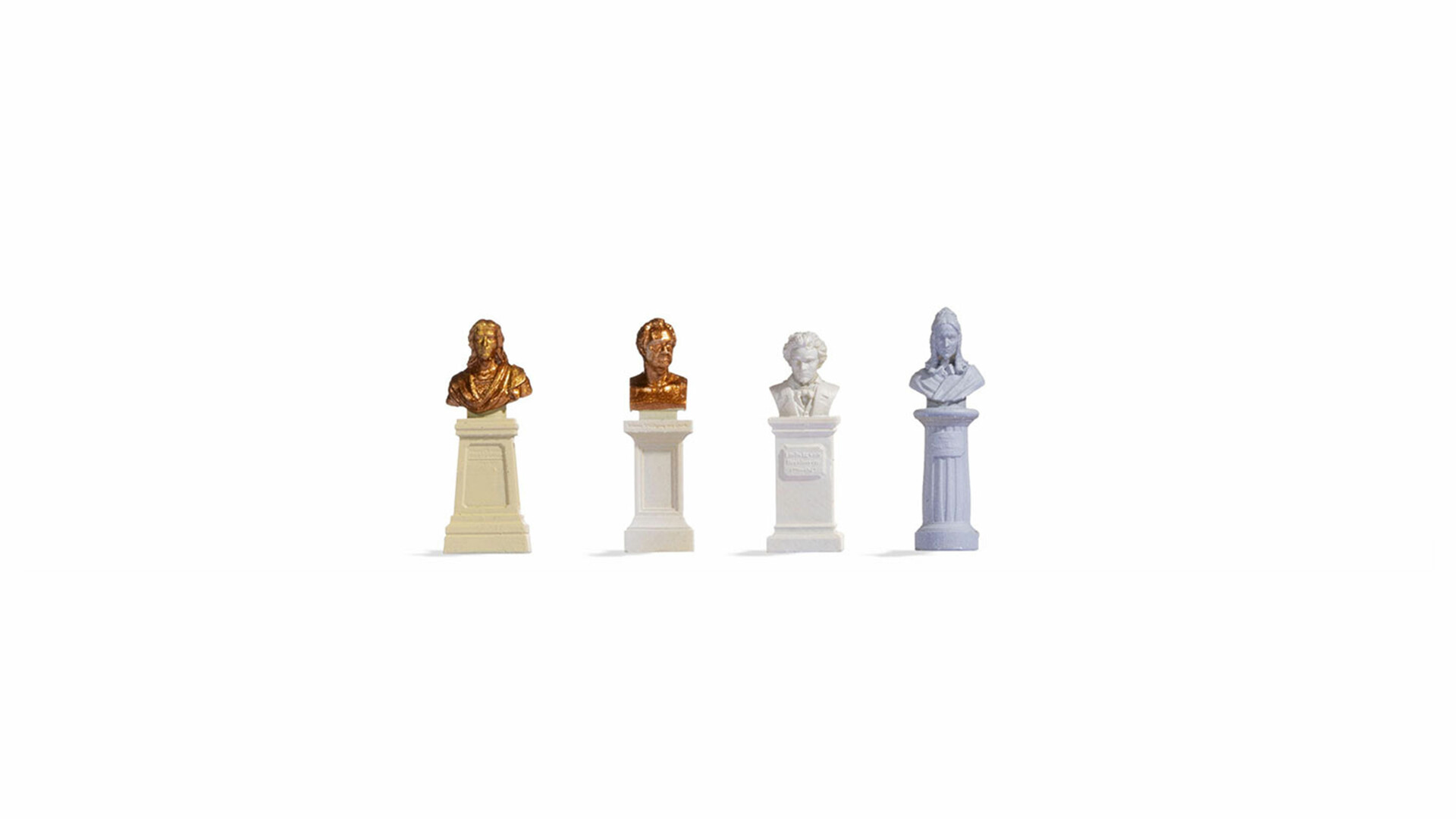 Denkmäler und Büsten prägen vielerorts das Stadtbild und sind zugleich markante Wegpunkte. Die NOCH Zubehör-Sets lassen sich vielfältig in der Modell-Landschaft einsetzen und schaffen einen attraktiven Blickfang. Büsten und Denkmäler stellen berühmte geschichtliche Persönlichkeiten und Szenen dar.