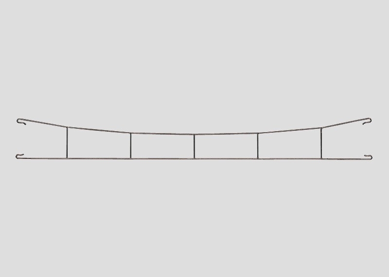 Aus geschweißtem Stahldraht. Länge 142 mm. Vorgesehen für gebogene Strecken mit Radius 360 mm (C-Gleis, K-Gleis, M-Gleis). Für einen Kreis werden 16 Fahrdrähte mit je 22,5° benötigt. Packung mit 5 Stück.