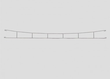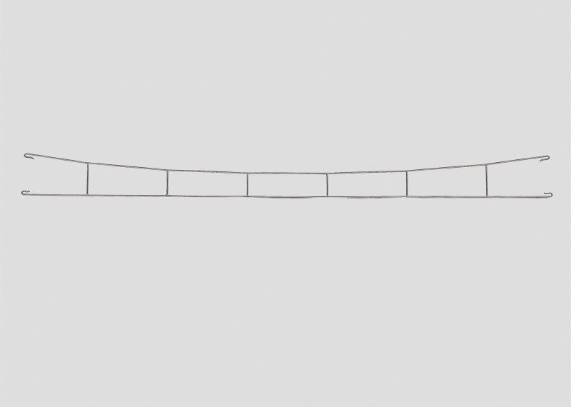 Aus geschweißtem Stahldraht. Länge 252,7 mm. Vorgesehen für gebogene Strecken mit Radius 643,6 mm (C-Gleis). Für einen Kreis werden 16 Fahrdrähte mit je 22,5° benötigt. Packung mit 5 Stück.