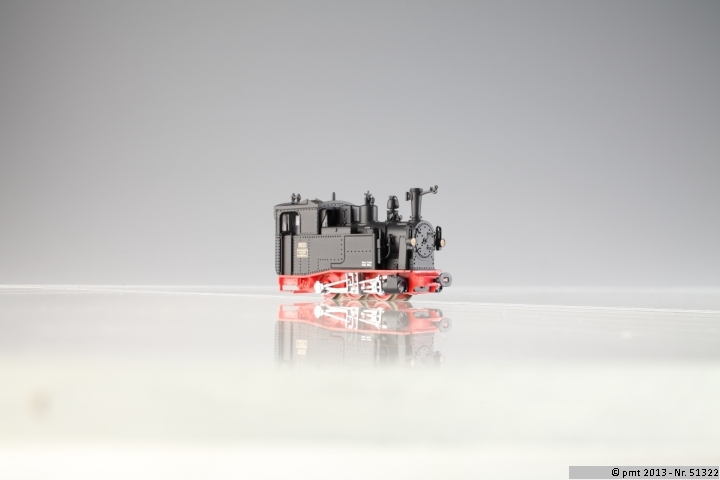 Dampflok IK in schwarz der K.Sächs.Sts.E.B. (Faulhabermotor). Modelldetails: Zweileiter-Gleichstrom. Länge über Puffer: 65,5 mm. Trichterkupplung. Antrieb durch Glockenankermotor mit Schwungmasse. Alle Achsen angetrieben. Stromabnahme über 6 Räder. Führerhaus und Wasserbehälter grün oder schwarz. Kessel, Rauchkammer und Dach schwarz. Fahrwerk mit Außenrahmenlagerung rot. Exakt nachgebildete Allan-Steuerung, bewegliche Kuppel- und Treibstangen silbergrau. Mittelpuffer- und Hakenkupplung zur wahlweisen. Selbstmontage liegen bei.