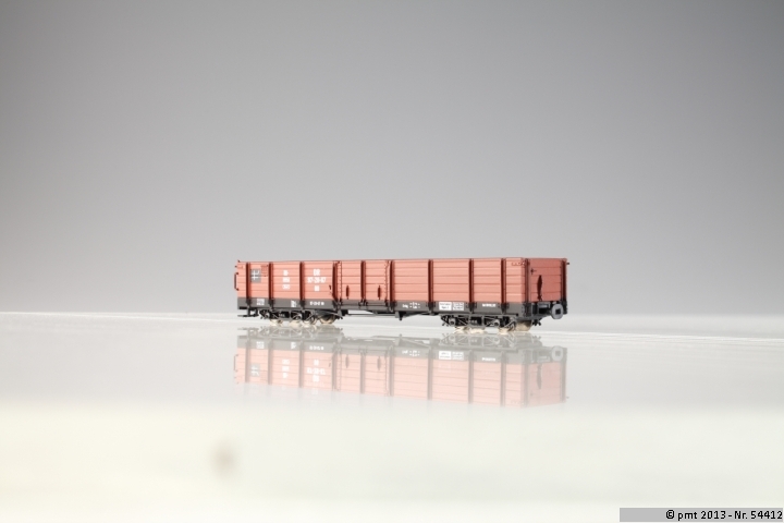 Offener Güterwagen in braun der DR für die Epoche 3, ohne Heberleinbremse. Modelldetails: Länge über Puffer: 123,5 mm und mit Trichterkupplung.