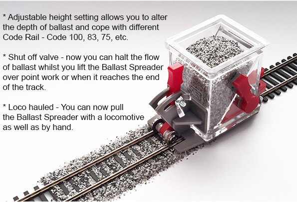 Schotterverteilungswagen Baugröße H0/00, mit Absperrklappe, höhenverstellbar.