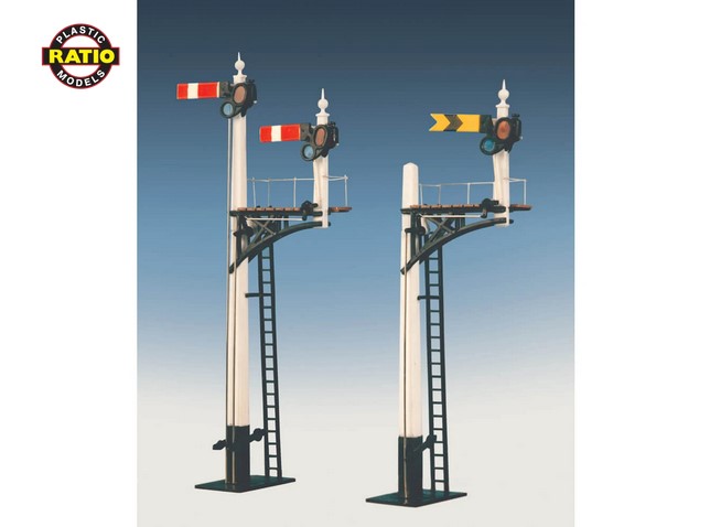 Abzweig-/Bügelsignal Teil der Signalfamilie 'Quick Assembly' von Ratio. Mit diesen können Sie schnell und einfach Heim- und Fernsignale herstellen. Inklusive Signalbetätigungsdraht und Hebel. Mit diesem Bausatz können Sie ein GWR-Kreuzungs-/Fernsignal nachbilden, entweder als Heim-, Fern- oder kombiniertes Heim- und Fernsignal. Zur Fertigstellung des Modells werden Kleber und Farben benötigt.