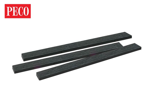 175 mm lange Schwellen in Holzmaserung für den Gleis- und Weichenbau.