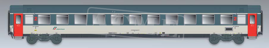 Überholter Personenwagen Typ UIC-Z der 2.Klasse für Intercity-Züge, gekennzeichnet durch das Fehlen des roten Bandes.der FS, Epoche VI
