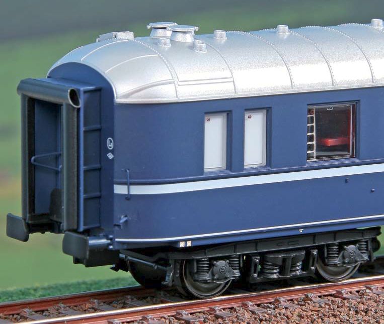 ISG Schlafawgen Typ Ub, von Nivelles gebaut in Pool TEN Lackierung mit N2 Drehgestellen eingestellt bei der SNCF, für die Epoche 4.