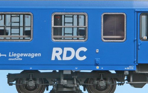 sehen, sowohl in RDC-Zügen als auch in Nightjet-Zügen. Blaue Lackierung mit RDC-Logos an den Seiten und silbernen