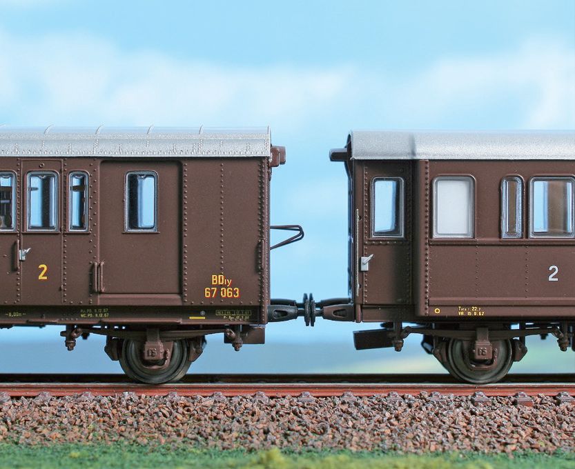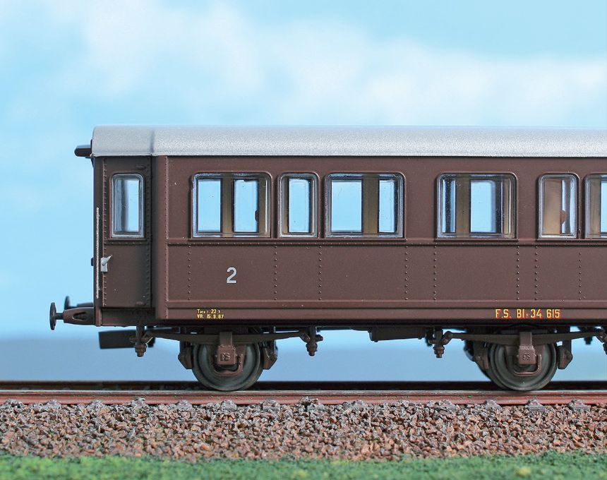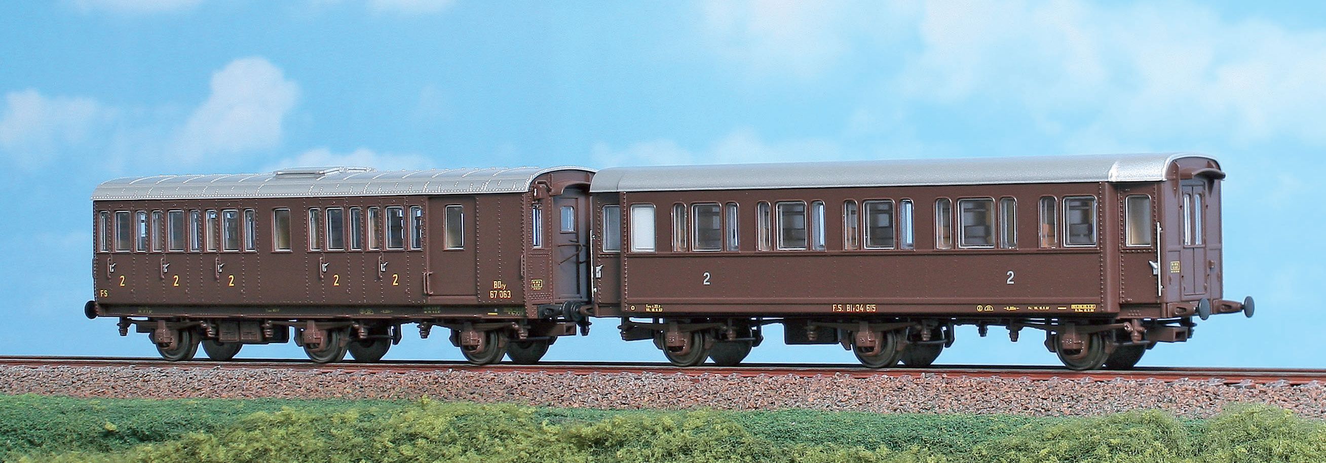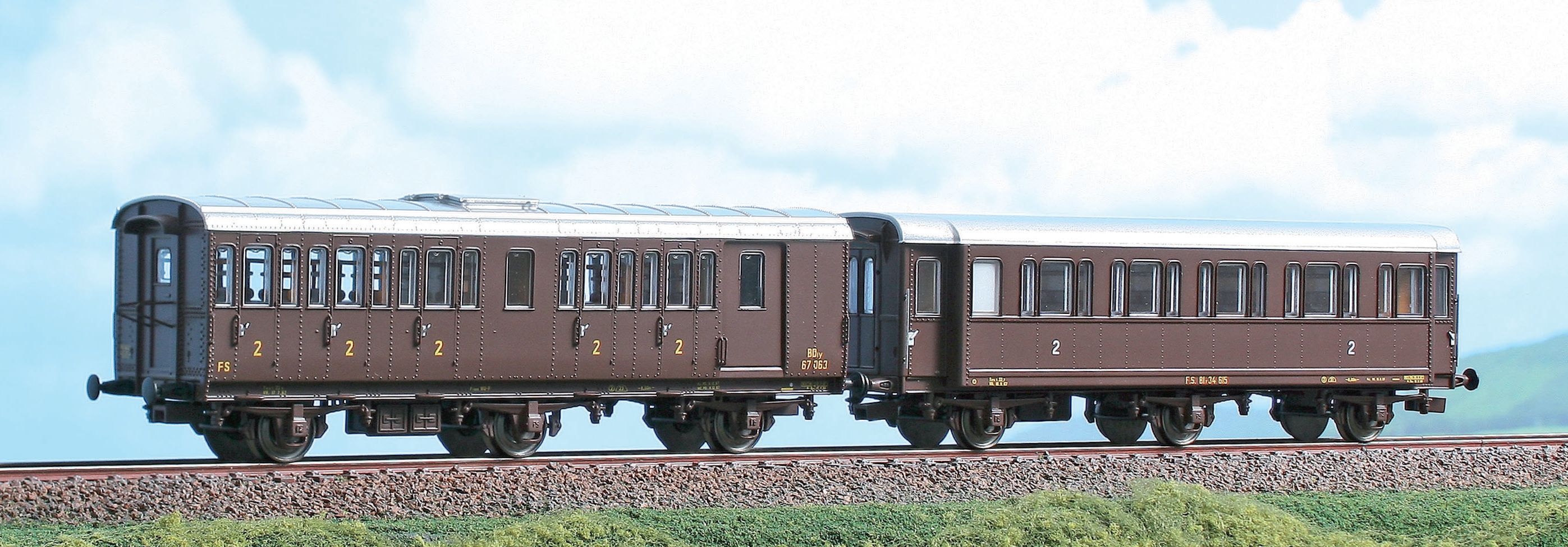 FS Personenwagen-Set mit zwei dreiachsigen Wagen des Typs 1931R, bestehend aus einem Biy 34.000 ? Wagen und einem BDiy 67.000-Wagen, für die Epoche 3.