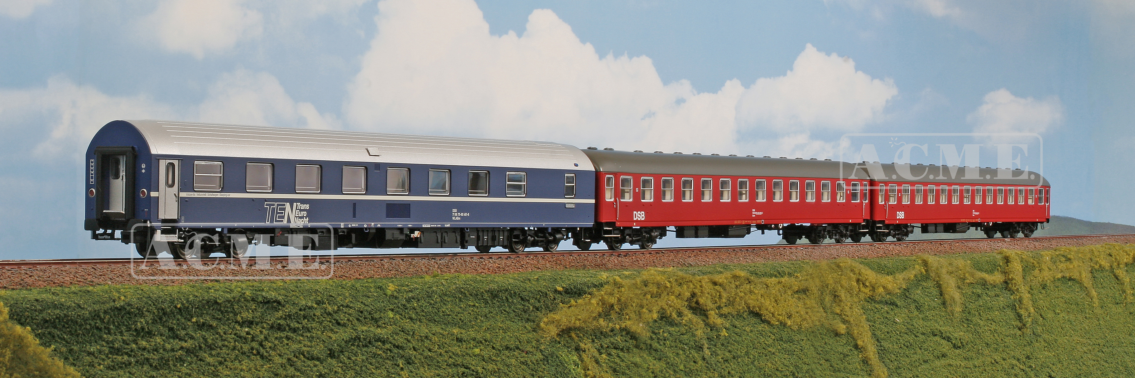 Set Nat Tog 594 / 595 mit einem Schlafwagen Typ T2s und zwei Liegewagen Typ UIC-X der DSB (Dänische Staatsbahn), für die Epoche 4b
