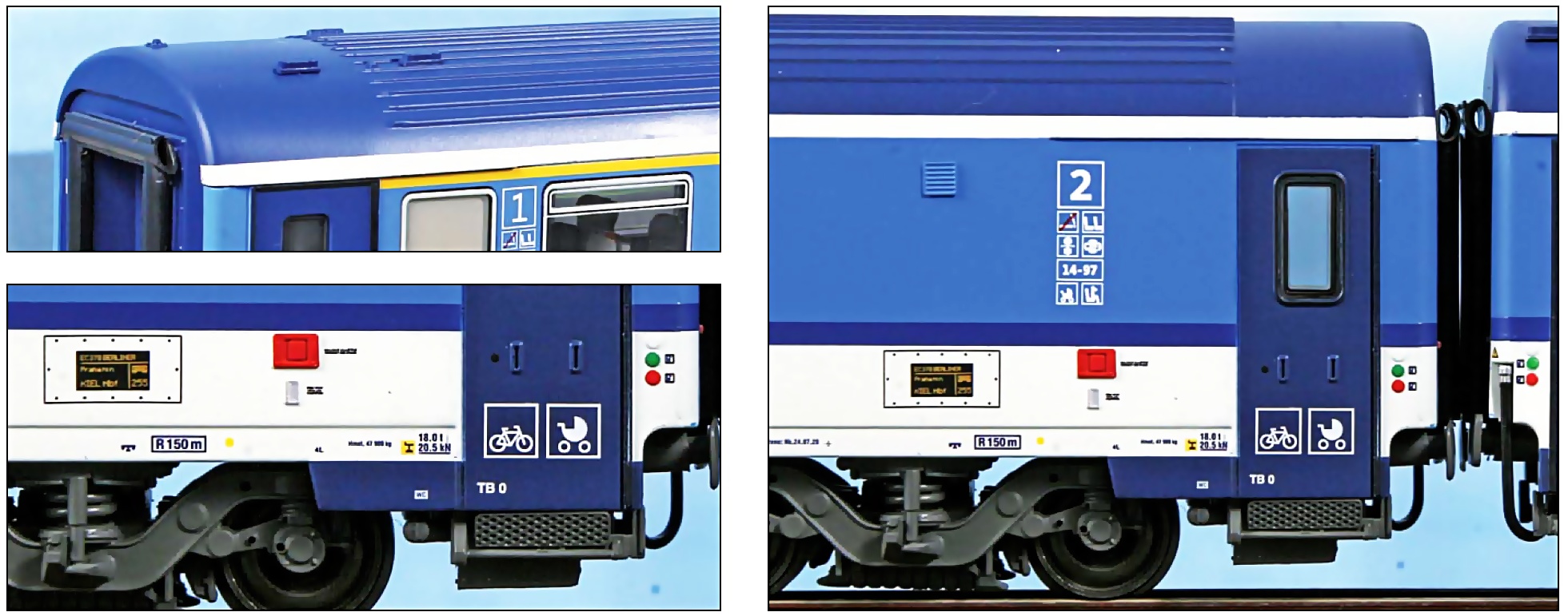 aus einem Ampz143-Wagen 1. Klasse, einem Bmz245-Wagen 2. Klasse und einem Bdmpz227-Wagen mit Abteil für den Fahrradtransport.