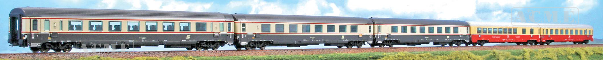 TEE - Bandiera, bestehend aus drei Salonwagen in Gran Conforto-Lackierung, einem Abteilwagen und einem Speisewagen in TEE-Lackierung. Zug im Einsatz auf dem italienischen Streckennetz in Epoche VI - LIMITIERTE Auflage