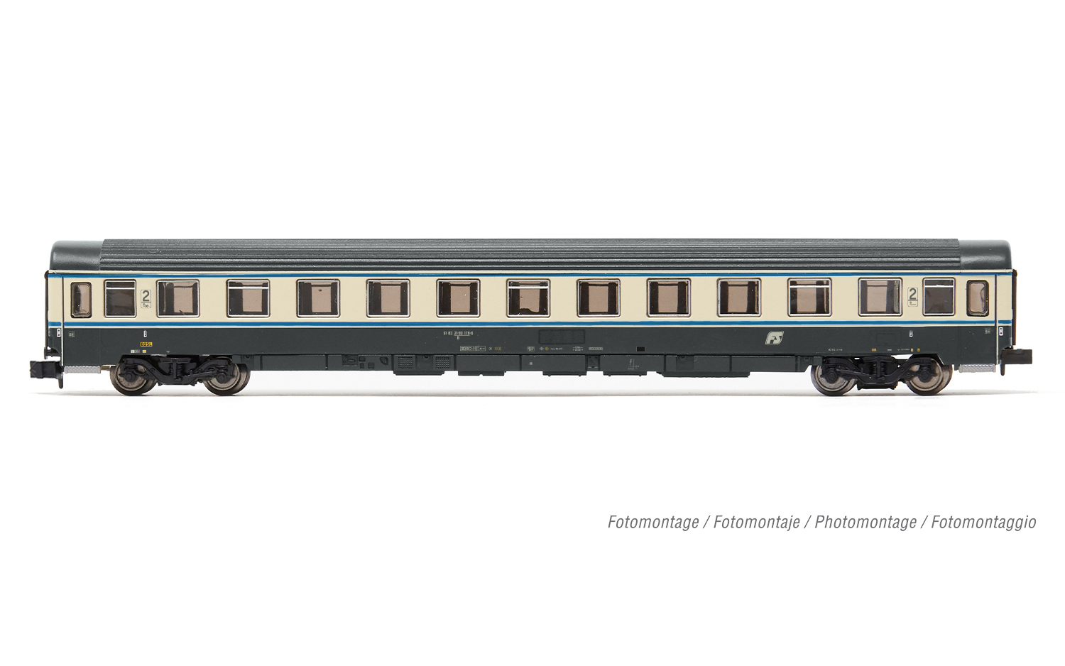 FS, 2-tlg. Set UIC-Z1-Wagen, bestehend aus 1.-Klasse-Wagen in grau/gelber Farbgebung + 2.-Klasse-Wagen in äBandiera“ Farbgebung, Ep. V