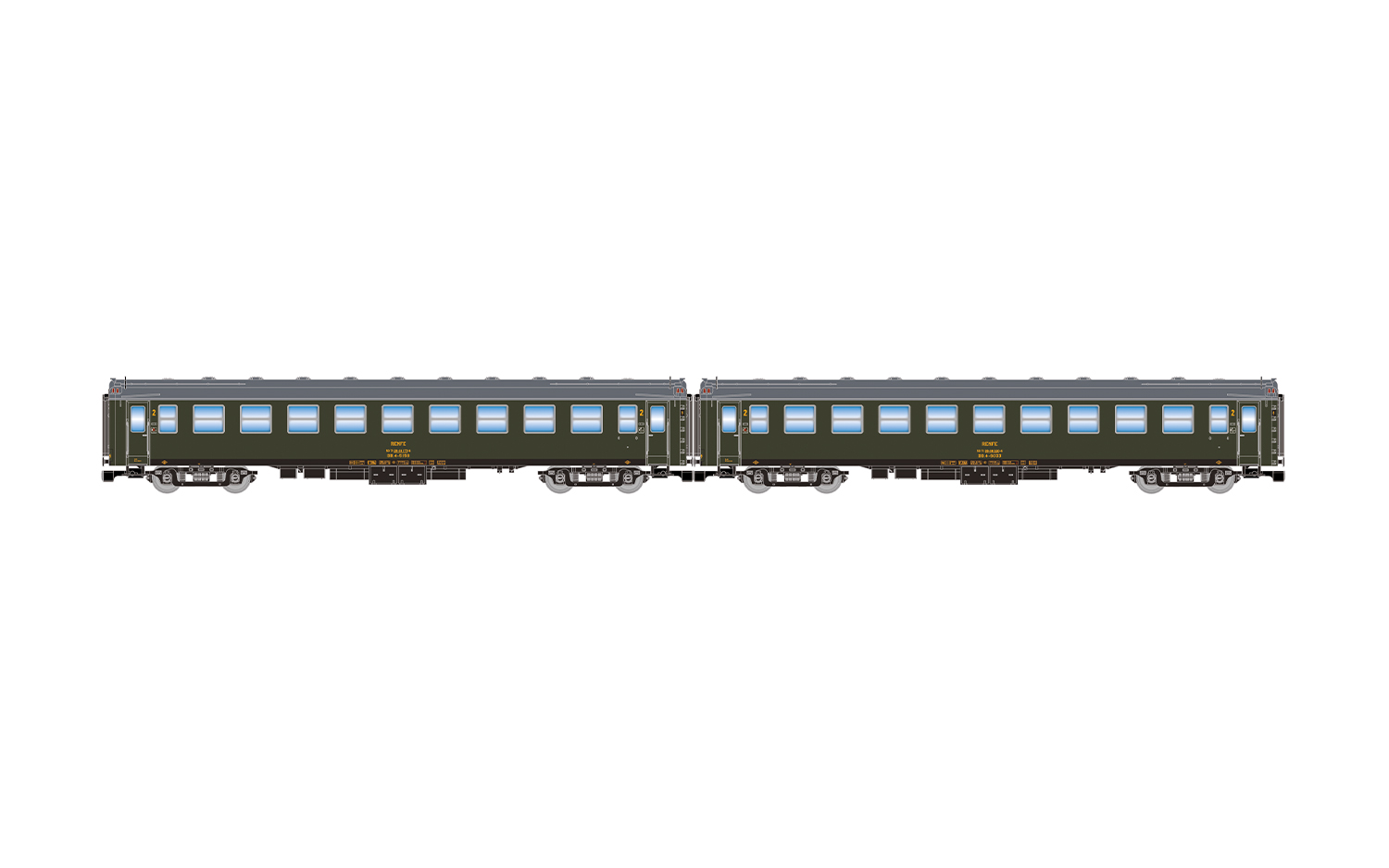 RENFE, 2-tlg. Set 5000-Wagen, 2 x BB4 2. Klasse, mit alten Faltenbälgen, grün -