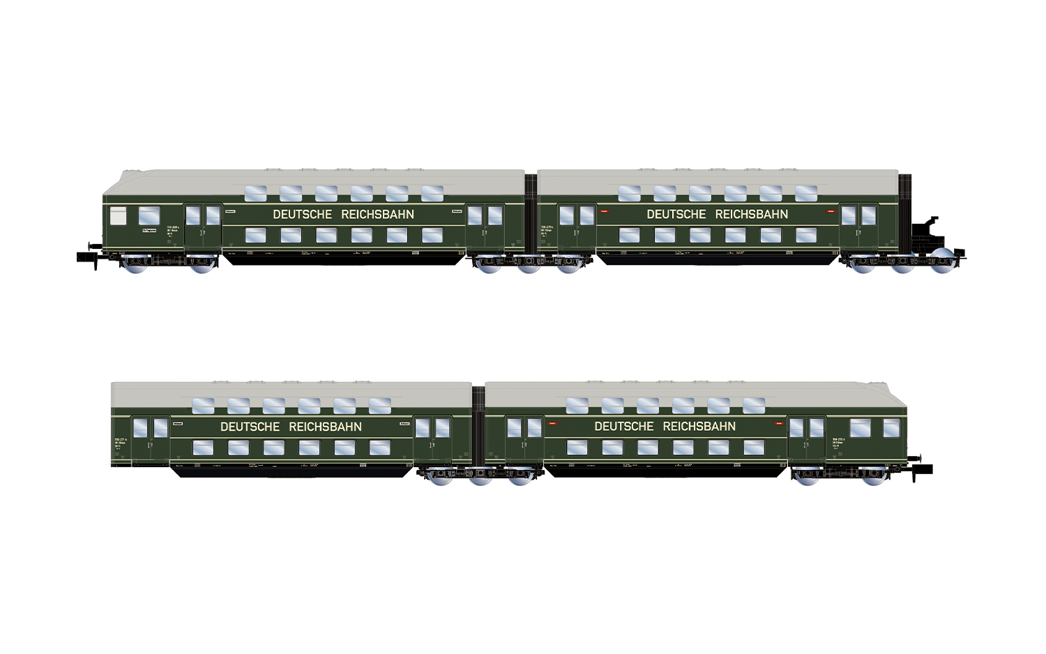 DR, 4-tlg. Doppelstockeinheit DB13ümpe, dunkelgrüne Farbgebung,