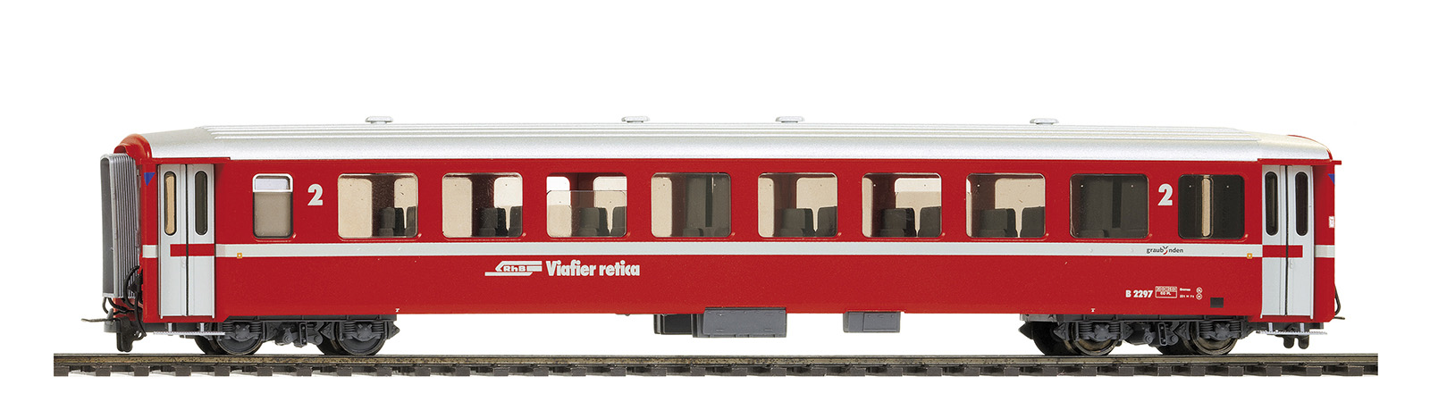 Modellnachbildung des B 2363 Einheitswagen I in neuroter Farbgebung und orangen Bremsecken.