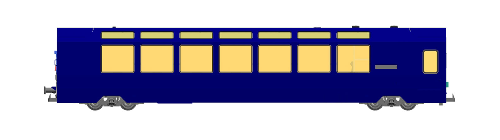 Steuerwagen mit Spitzen-, stirnseitiger Zugziel-, Führerstands- und LED-Innenbeleuchtung sowie Digitalschnittstelle Next18 (NEM 662) und stirnseitigen Teilen zur vorbildgetreuen optischen Aufwertung, falls keine Modellkupplung benötigt wird. Die neun Drehsitze der Prestige Klasse können in beide Fahrtrichtungen montiert werden. Die Wagen As, Bs und Bsi sind für eine optional erhältliche Innenbeleuchtung vorbereitet.
