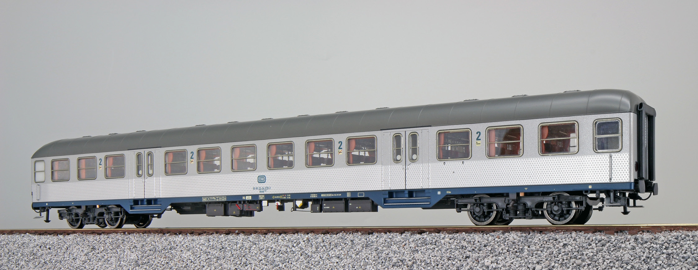n-Wagen, Bnrz 725, 22-34 078-2, 2. Kl, DB Ep. IV, silber, Pfauenauge, Rahmen ozeanblau, Dach umbragrau, DC