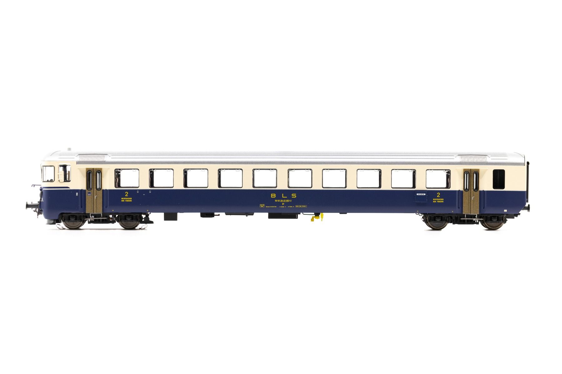 BLS Steuerwagen Bt 952 mit Mittelschrift, neuen Lampen und Gummiwulstübergängen, für die Epoche 4.